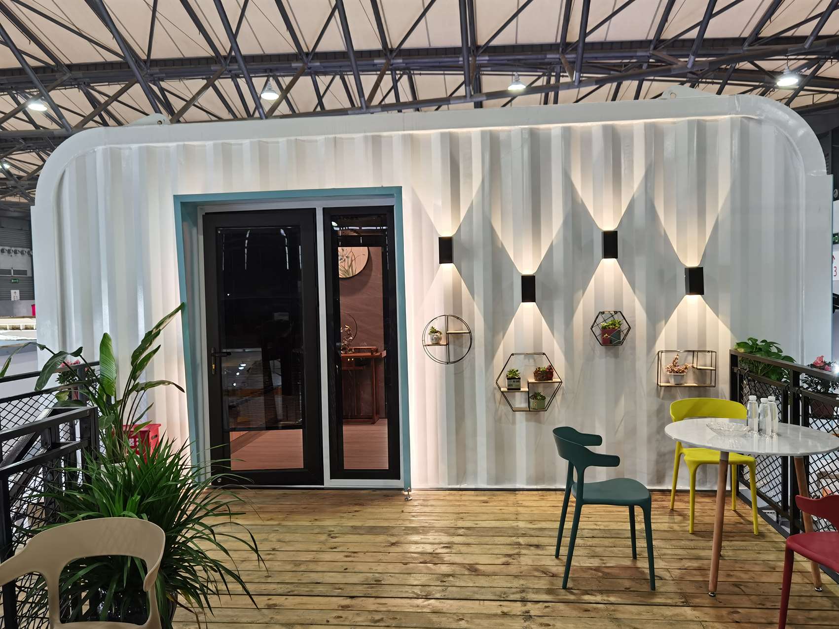 柜族本次參展的產(chǎn)品——逸海小筑位于E2裝配式建筑展區(qū)的2269展位,是一款以藍(lán)白為主色調(diào)、融入了水與波浪元素的海洋風(fēng)集裝箱別墅。該產(chǎn)品的設(shè)計(jì)理念為環(huán)保、舒適、旅居,以不破壞場地與自然環(huán)境為出發(fā)點(diǎn),整個(gè)產(chǎn)品為工廠預(yù)制完成,地面抬高3個(gè)臺(tái)階,有效隔離了地面的潮氣。箱子著力點(diǎn)有圓柱支撐,底座圓盤加大了受力面積和整體平衡性。箱子整體分為一、二層兩個(gè)模塊,用吊機(jī)和平板車整體裝卸運(yùn)輸,在選好的平整地面直接擺放就可以入住使用了。
